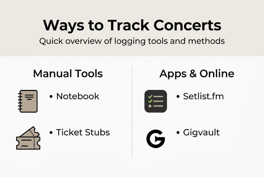 | Tools make tracking easy | Apps like Gigvault and Setlist.fm allow you to record setlists, venues, and stats effortlessly. |