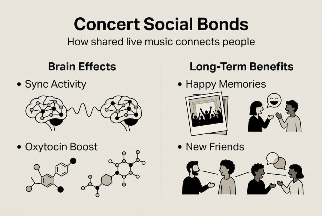 Most people see concerts as entertainment, a chance to hear their favorite songs live and escape daily routines. Yet concerts do something far more profound: they forge instant social bonds through synchronized brain activity and shared emotional highs. Research reveals that attending live music events with others triggers unique psychological mechanisms that strengthen friendships, build community, and boost happiness for days afterward. Whether you're connecting with old friends or meeting new ones, shared concert experiences create lasting social connections that passive listening or virtual events simply can't match. This guide explores the science behind concert bonding and practical strategies to maximize these powerful social effects.